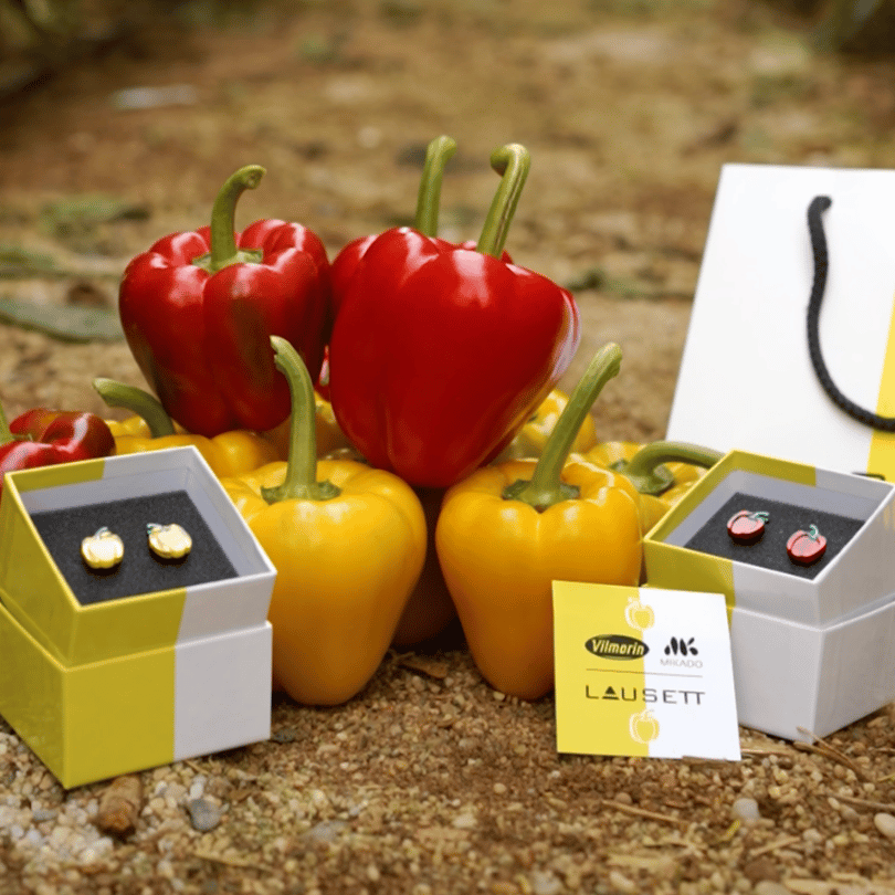 Fruto de este trabajo conjunto surge una pieza exclusiva e inédita, creada únicamente para Vilmorin-Mikado Ibérica y basada en uno de los cultivos más emblemáticos de nuestra tierra: el pimiento California. Lausett ha tomado este fruto tan representativo como inspiración para diseñar unos pendientes que trasladan al diseño la esencia y la identidad de la agricultura almeriense.